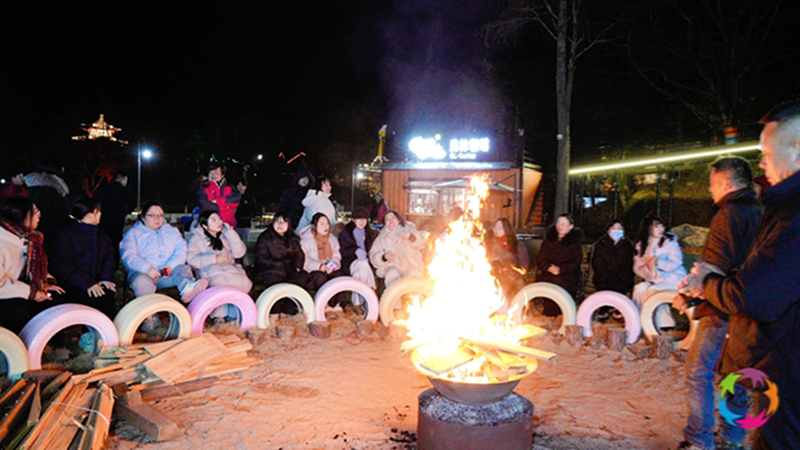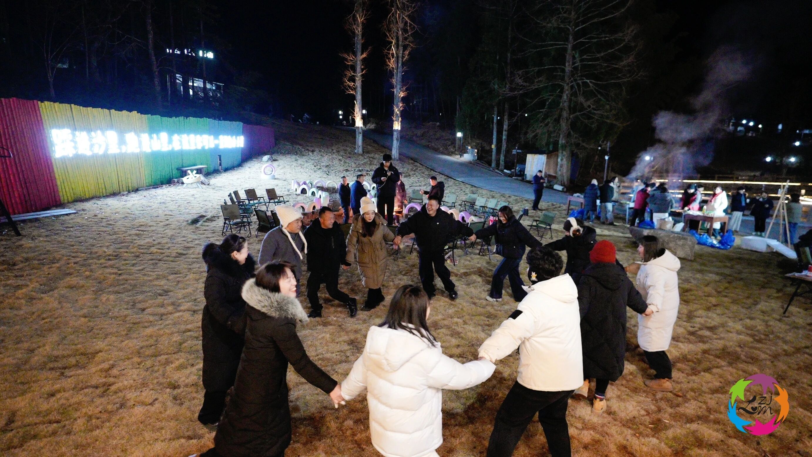 晚宴后,一场别开生面的篝火晚会在户外空地点燃。熊熊篝火照亮了夜空,也点燃了所有人的热情。